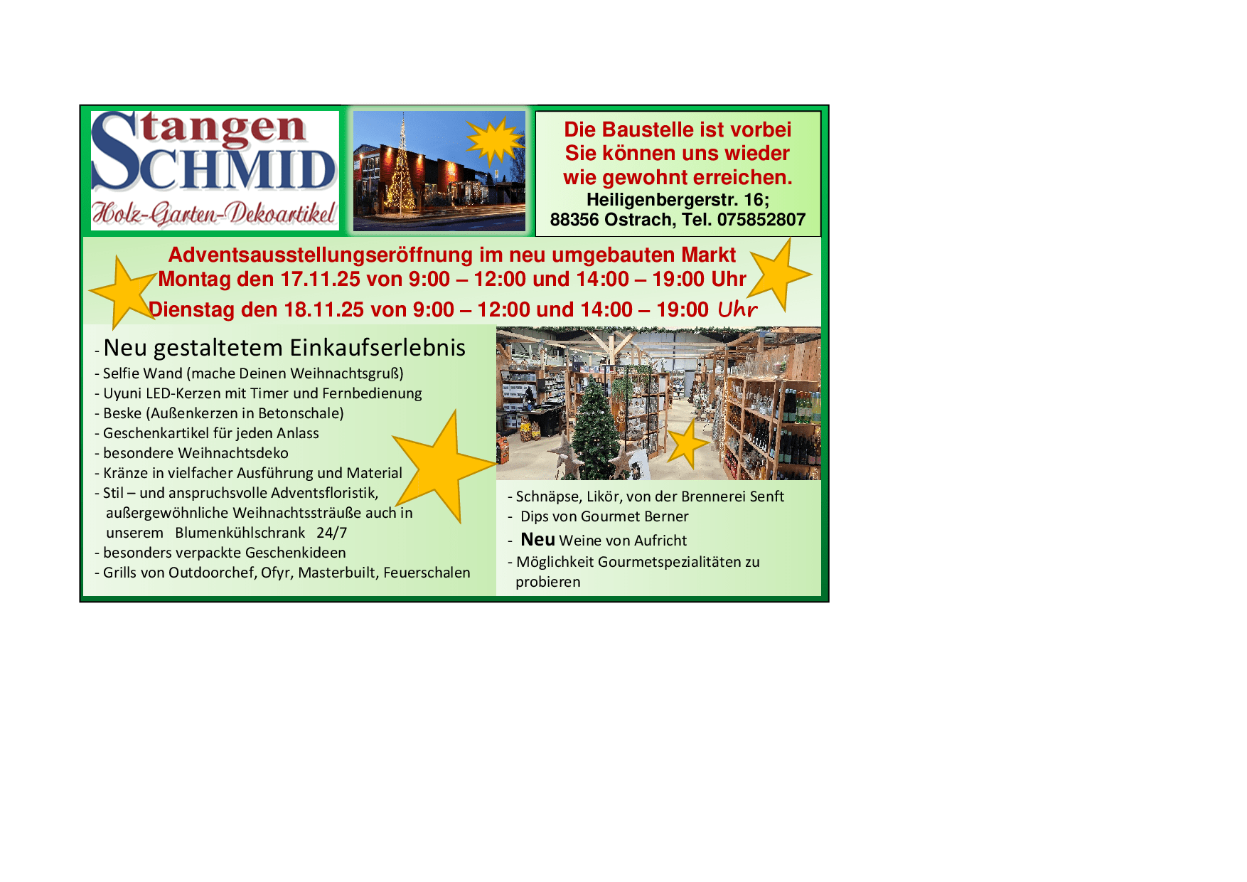 Während der Sperrung der Hauptstraße in Ostrach erreichen Sie uns weiterhin über diese Umleitungen.